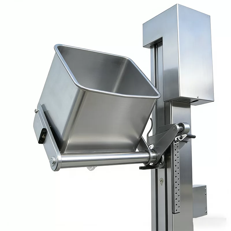 The Zhenglin elevator is specifically engineered to support 200L standard meat trucks, providing reliable lifting performance while minimizing labor and operational complexity. Its primary function is to elevate materials and dump them into the hopper of processing equipment, completing the feeding process efficiently. The elevator’s robust construction, combined with high-quality stainless steel components, ensures durability, hygiene, and ease of cleaning—essential qualities for food processing environments.